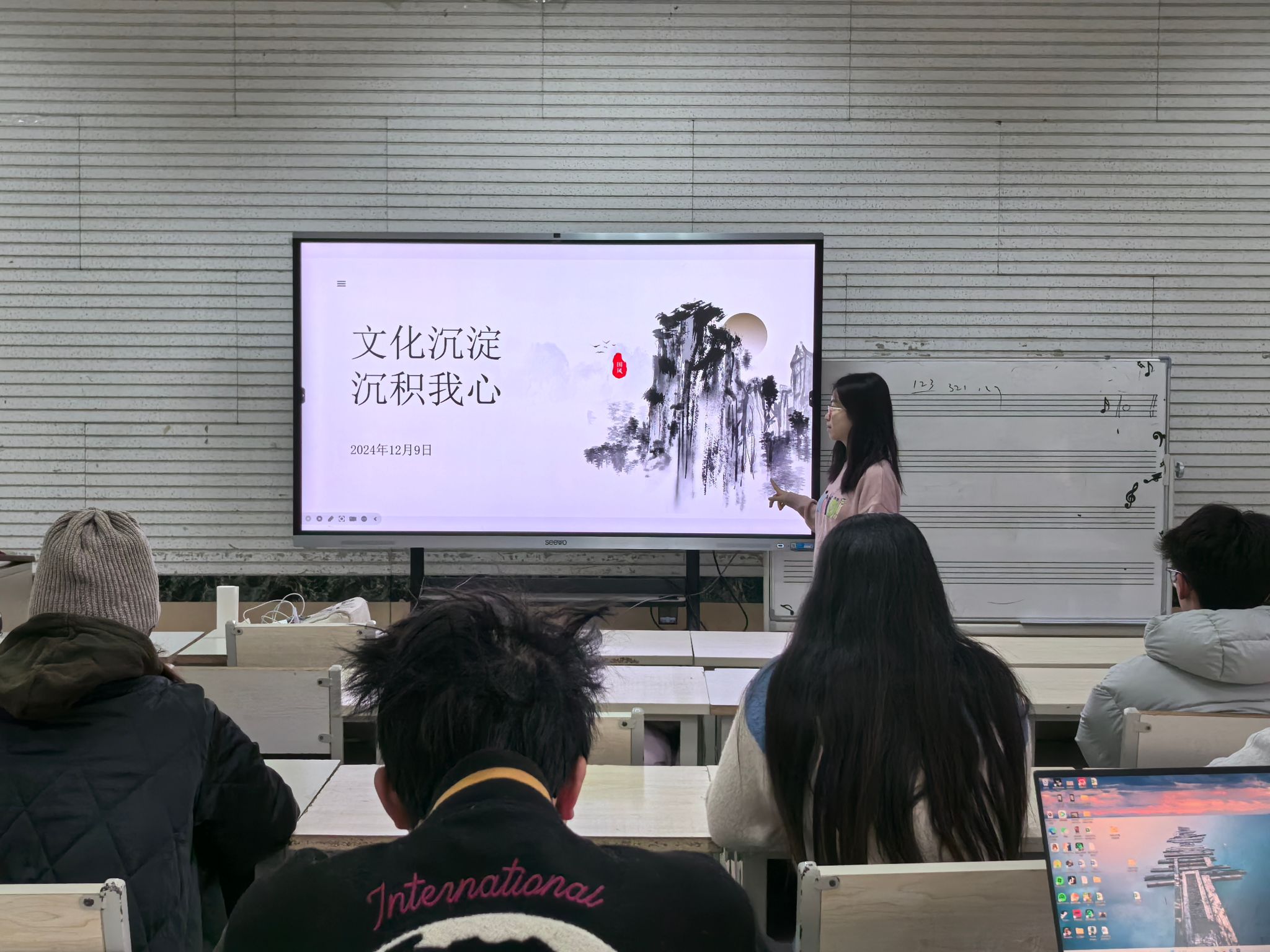 在解读过程中,吕柯华还重点讲解了习近平文化思想中蕴含的多种力量,包括守正开新的创新精神、实践的力量以及人格的力量等。她鼓励同学们要深入学习领会习近平文化思想,积极践行文化自信,为推动文化繁荣贡献力量。