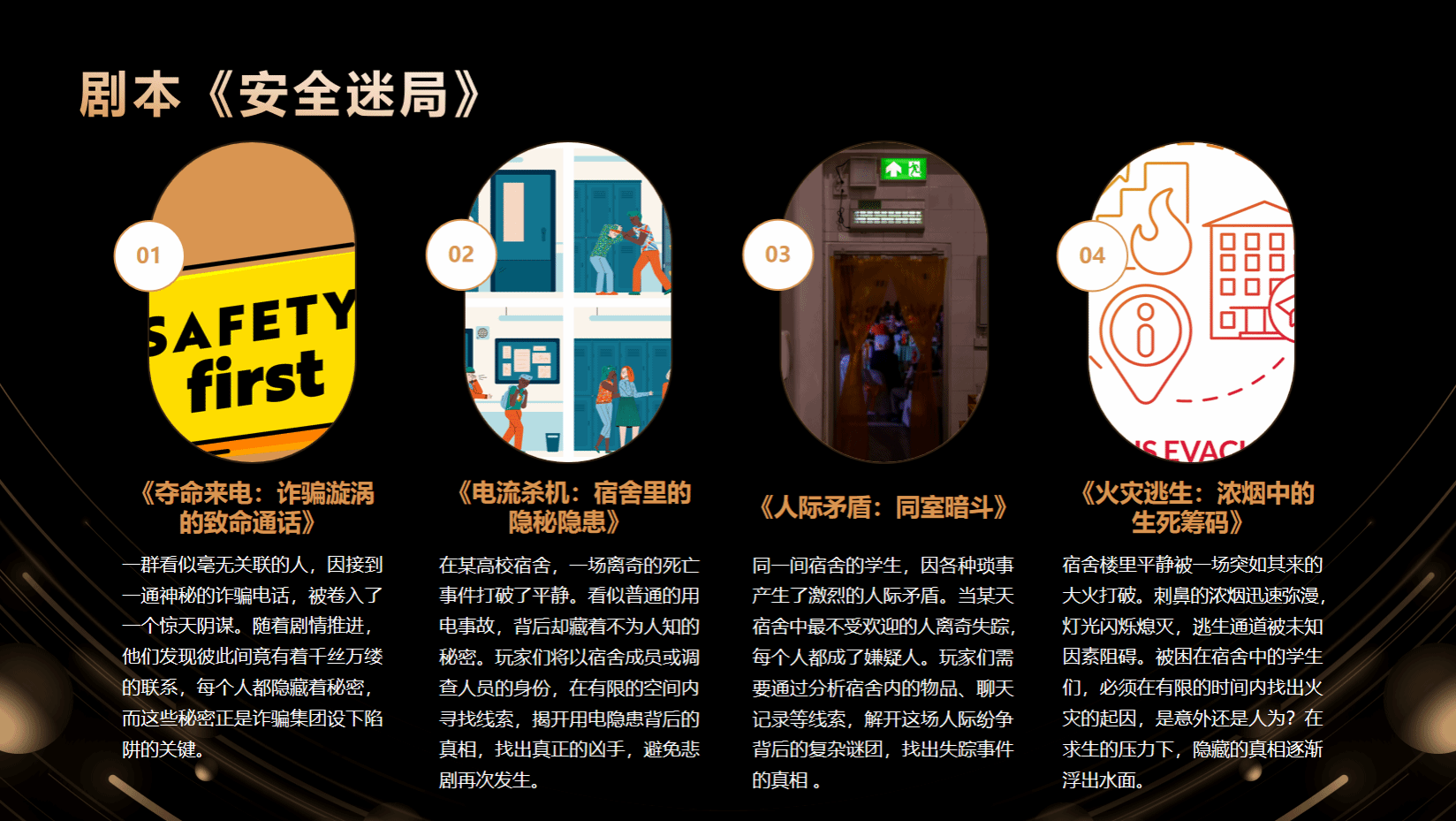 音理2201班通过“校园安全剧本杀”活动,构建沉浸式教育模式。团支书李章儿自主创作的剧本《安全迷局》,紧密围绕电信诈骗、宿舍用电安全隐患、人际矛盾等核心安全问题,精心设计了逐级递进的关卡。学生们扮演“侦探”角色,通过线索分析和角色互动,解决各类安全危机。在“宿舍火灾逃生”环节中,参与者需迅速判断逃生路径并模拟报警程序,以此在紧张的氛围中提升应急处理能力。活动的结尾环节播放了安全教育短片《安全无小事》,以真实的案例对学生进行警示教育,以防止事故发生。