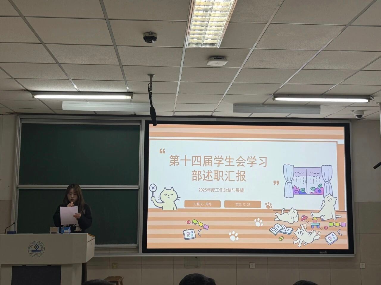 大会在庄严的国歌声中开始。随后,学生会文体部、科创部、团学部、学习部、宣传部、青年实践部及心理健康协会负责人依次进行述职。各部门围绕年度工作重点,以详实数据和实际案例进行汇报:文体部作为连接校院两级文艺活动的桥梁,团结一心、主动承担,多次组织策划文化体育活动并取得较好成绩;科创部立足学科专业特色,摸清家底、积极谋划,举办“音创未来”科创月系列活动,为美高梅娱乐城