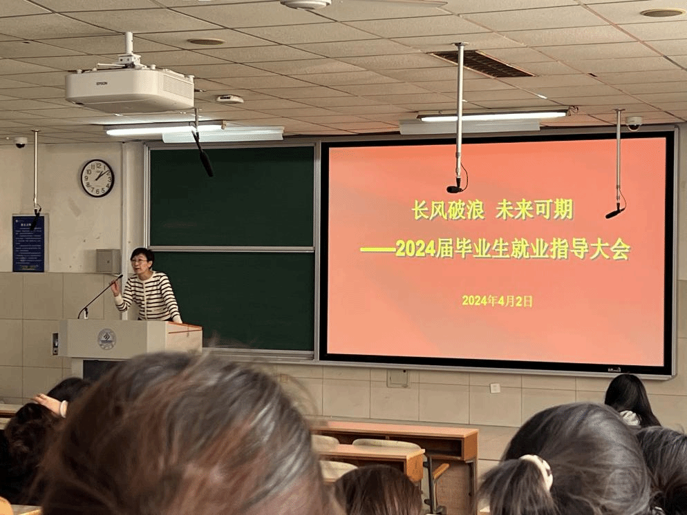 “长风破浪,未来可期2024届毕业生就业指导会”在2J105召开,辅导员宋莉璐和2024届全体毕业生参加了会议。