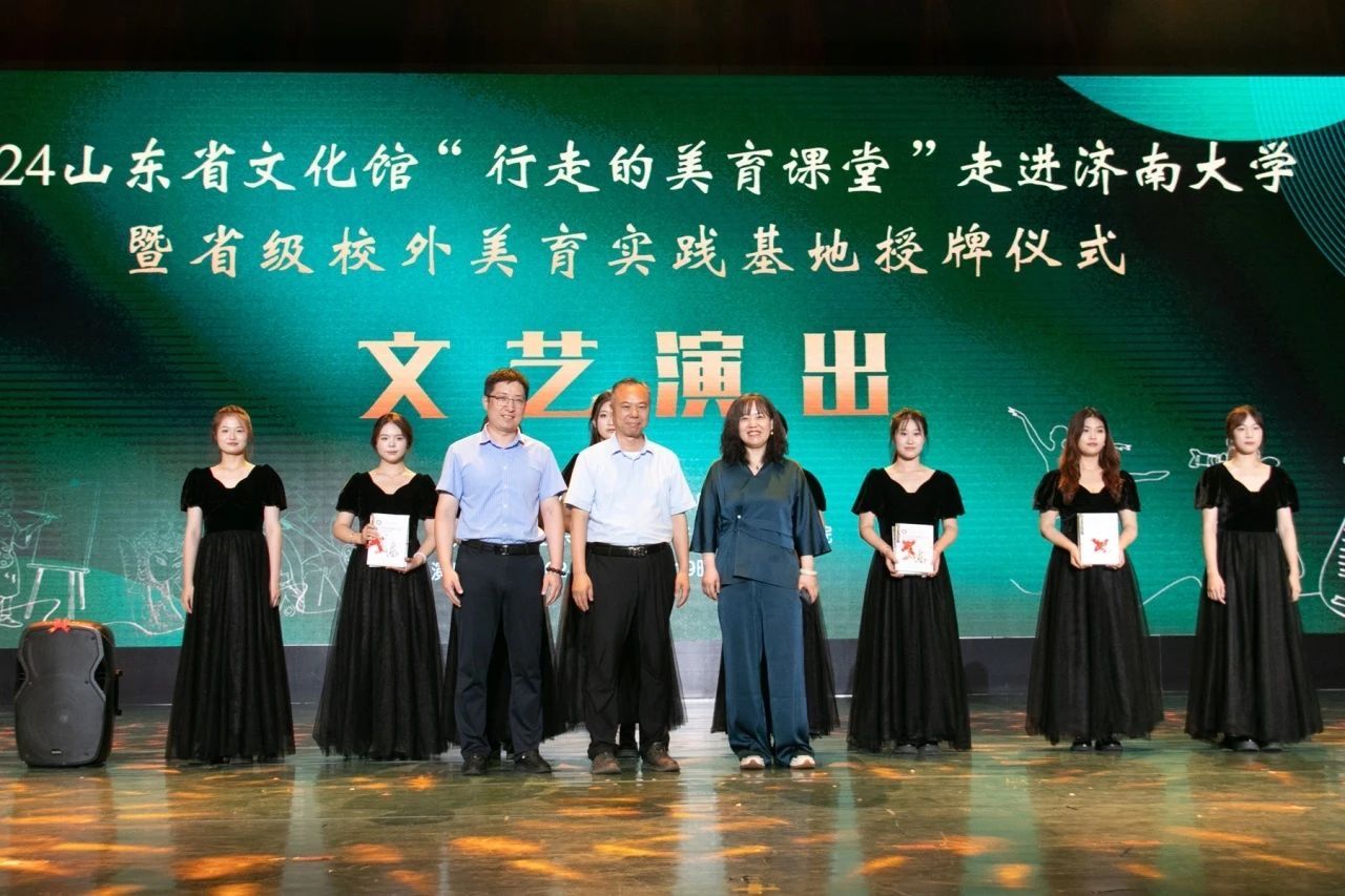 文艺演出暨省级校外美育实践基地授牌仪式在济大礼堂隆重举行,山东省文化馆副馆长王芹、美高梅娱乐城