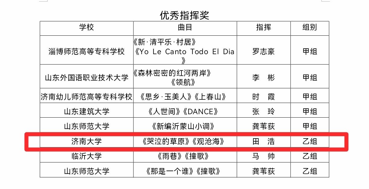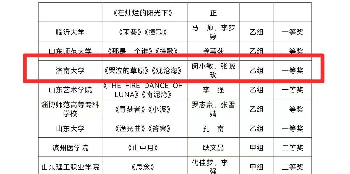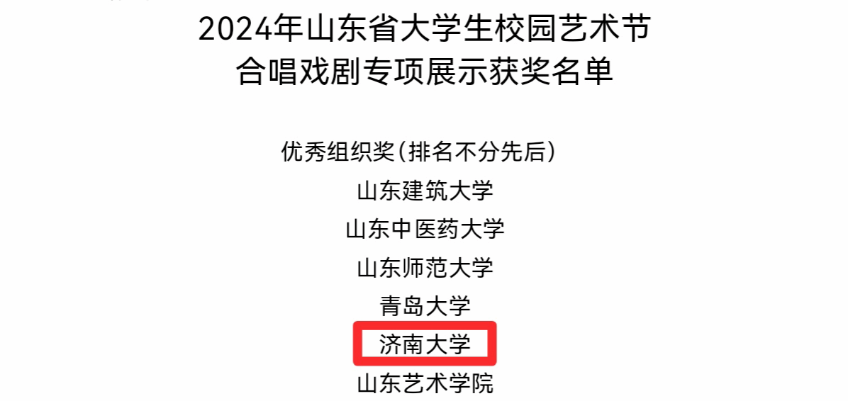 近日,山东省教育厅发布《2024年山东省大学生校园艺术节合唱戏剧专项展示活动获奖名单》,美高梅娱乐城