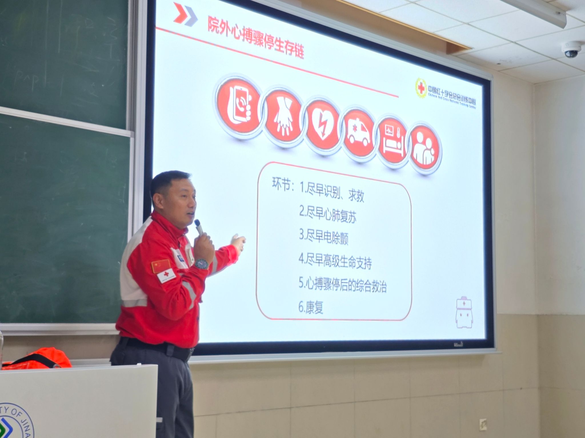 活动现场,任海涛为同学们详细讲解AED(自动体外除颤器)的使用,通过模拟演示,展示了如何快速识别心脏骤停的迹象,以及打开AED设备的正确方式,提高自救和互救的能力。