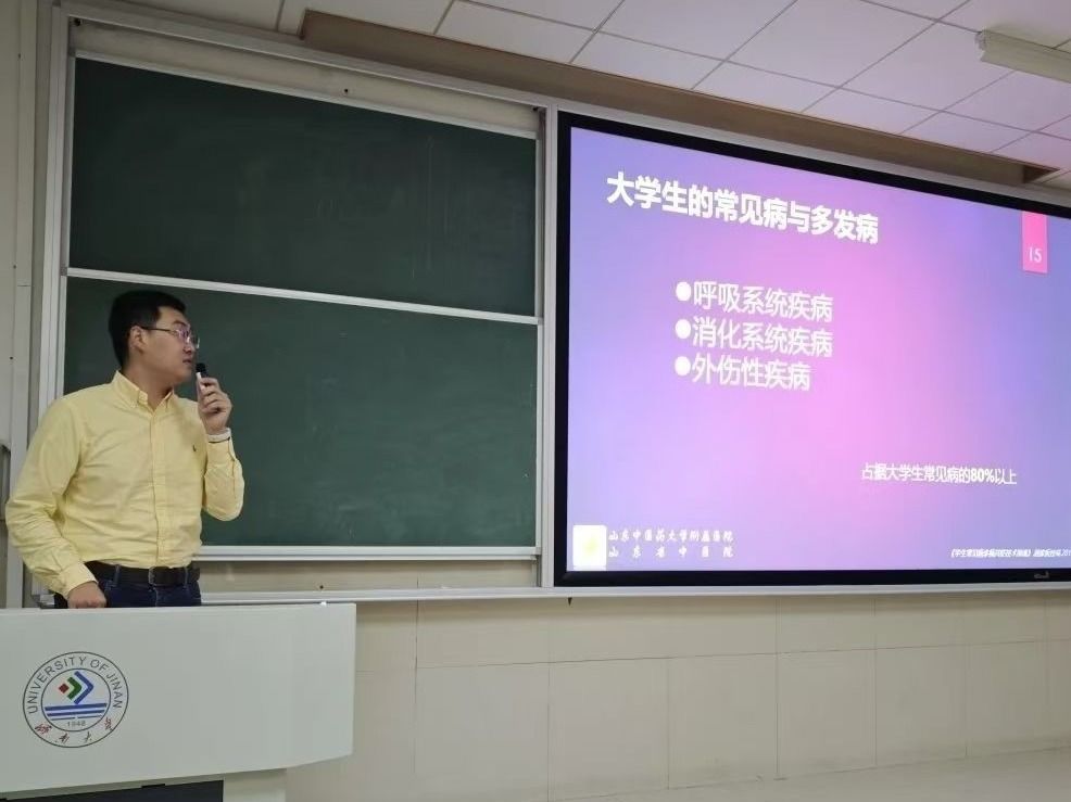 修方睿以“什么是健康”为题,从“个人习惯对健康的影响”“如何寻求医疗帮助”“如何在医疗机构内就诊”及“大学生的常见病”四个方面为学生普及医疗卫生常识,对近期较为普遍的呼吸道系统、消化系统、外伤性三个方面疾病的问题进行了细致讲解,叮嘱学生要适量运动,增强体质,才能做到有效预防疾病。他强调,健康不仅仅是没有疾病,还包括身体、心理和社会适应能力的完好状态,希望每位学生都能重视并实践。
